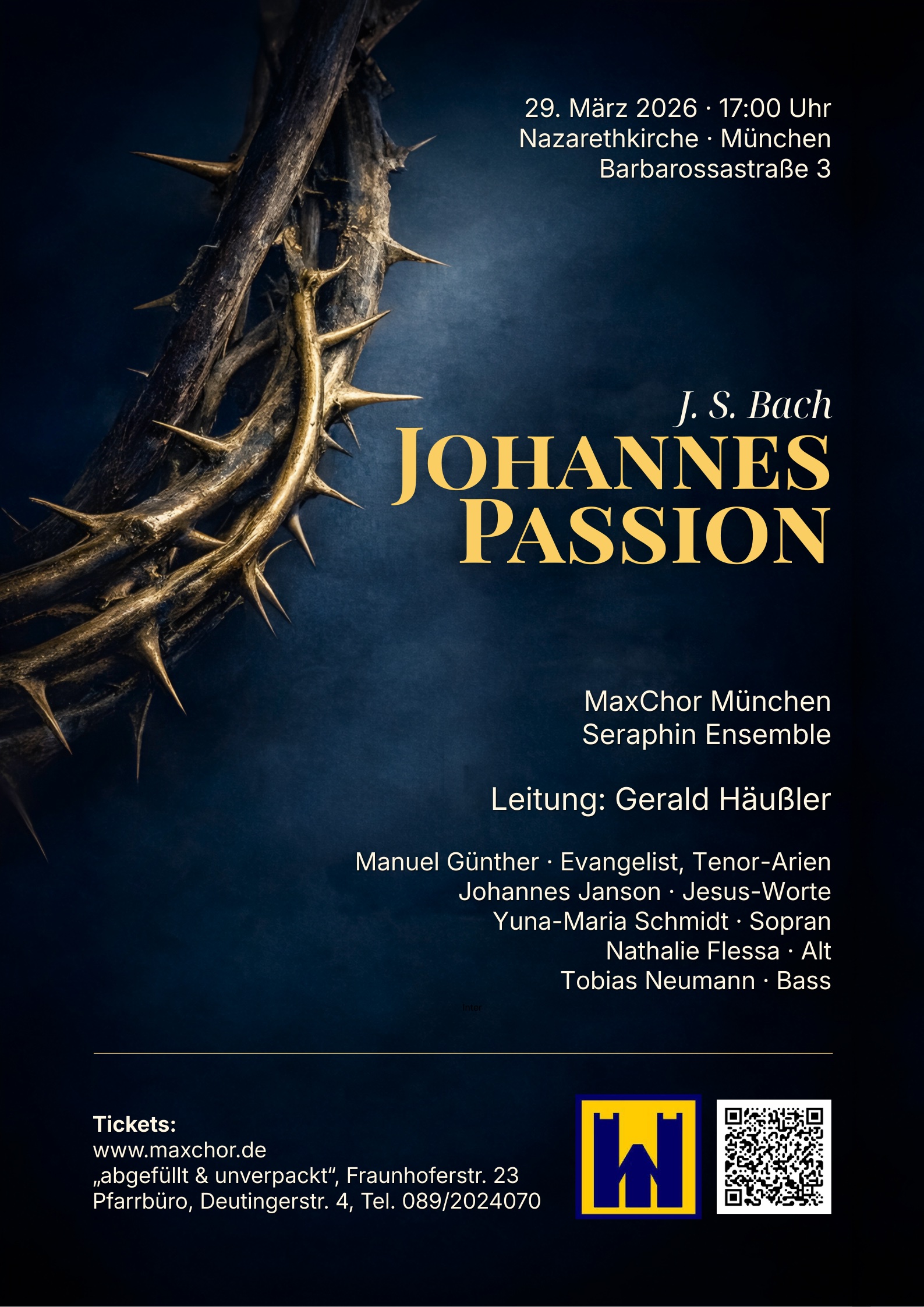 Konzert- und Kirchenchor nennt sich der MaxChor – das ist Anspruch und Auftrag zugleich. Etwa 20 kleinere und größere Termine – vom großen Konzert bis zur Maiandacht – stehen jedes Jahr im Kalender der MaxChor-Sänger. Bachs „Messe in h-moll“ 2014 in Verona und München gemeinsam mit einem italienischen Profiorchester sowie 2016 Dvoraks „Stabat Mater“ in St. Maximilian gemeinsam mit der südböhmischen Philharmonie aus Budweis sowie Mozarts „Requiem“ in Prag, gehören zu den Höhepunkten.